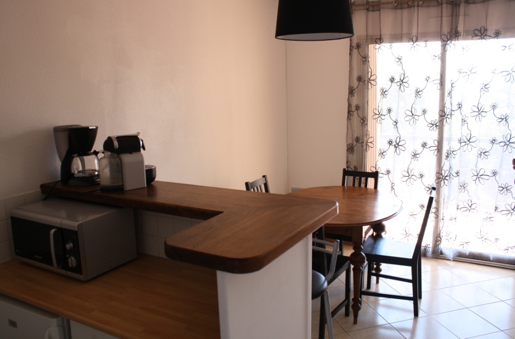 Il est composé d’une entrée, d’un spacieux séjour climatisé avec canapé convertible (2 personnes), d'une cuisine américaine, d'une terrasse, d’une chambre climatisée avec lit 2 personnes, d'une salle de bain avec douche (renovée en 2018) et d'un wc séparé.